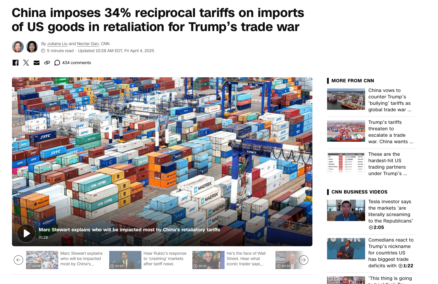 - 2025年4月,Trump历史性地对全球施加高额关税,导致很多国家的报复性关税。