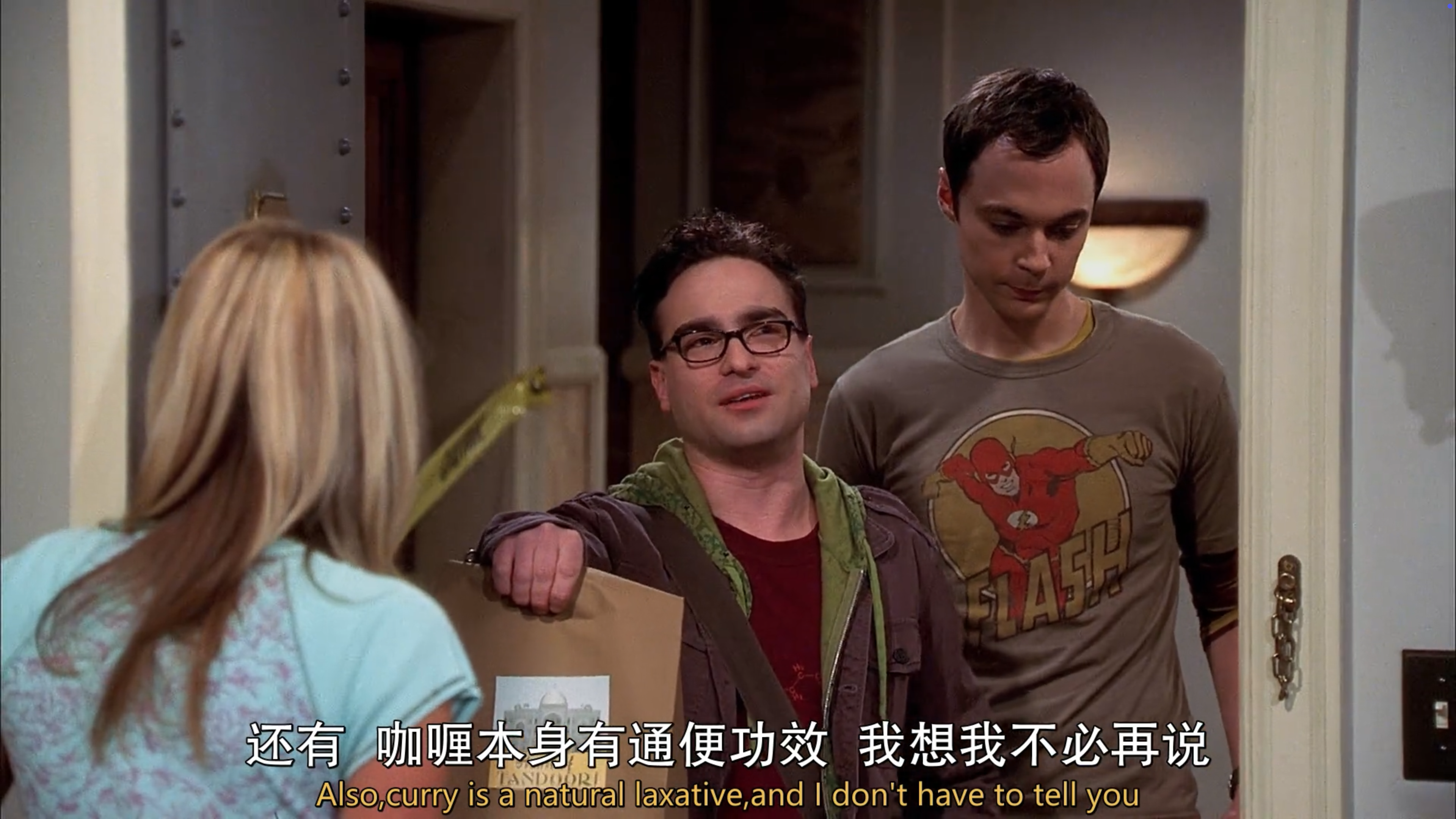 Leonard: Anyway, um. We brought home Indian food. And, um. I know that moving can be stressful, and I find that when I’m undergoing stress, that good food and company can have a comforting effect. Also, curry is a natural laxative, and I don’t have to tell you that, uh, a clean colon is just one less thing to worry about.